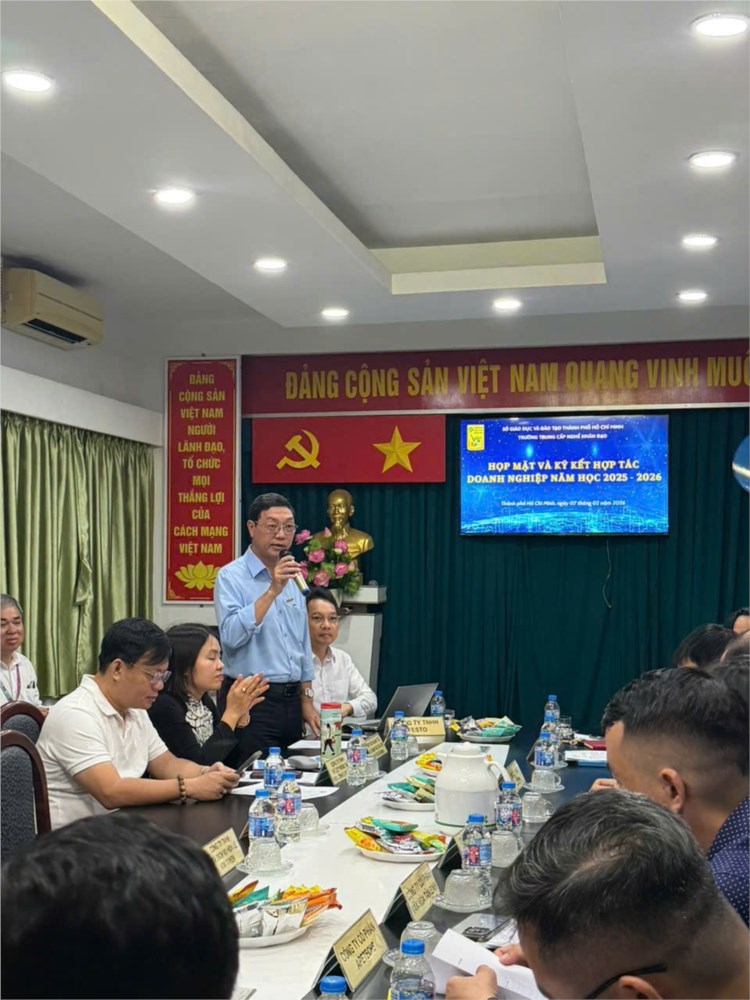 Vào sáng ngày 07/02/2026, Trường Trung cấp nghề Nhân Đạo đã tổ chức buổi Họp mặt và ký kết hợp tác Doanh nghiệp năm học 2025 - 2026. Đến với buổi họp mặt và ký kết, có sự hiện diện của Ban giám hiệu nhà trường và quý thầy cô đại diện các phòng, khoa/bộ môn cùng 18 doanh nghiệp trên tất cả các lĩnh vực về điện – điện tử - điện tự động, dịch vụ chăm sóc sắc đẹp, nhà hàng – khách sạn, điện lạnh, xuất khẩu lao động … đã cùng đồng hành cùng với Trường trong những năm qua tham dự buổi họp mặt.